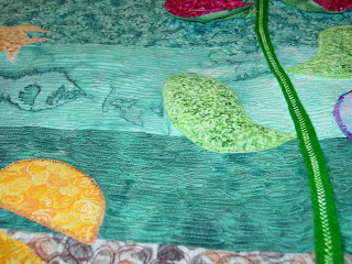 Now here are a series of pictures of "Springing Up Fun". I got started on the quilting. I quilted rocks.